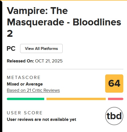 >it doesn't need to be like VtMB>it doesn't need to have good writing and characters>it doesn't need good journo reviews>it doesn't need good user reviews>it doesn't need to sell well>it doesn't need to be popular