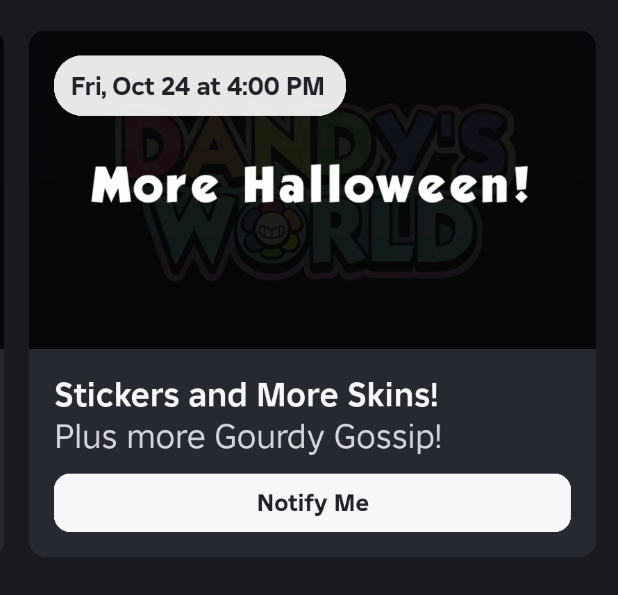 You all forgot the Server LinkAGAINAnyway, come join us for when the update comes out.https://www.roblox.com/share?code=0571d249312b4c49b427022bc15b4b7f&type=Server