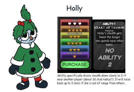 >>723520395I seriously don't get the point of Festive Aura, it's in a similar balancing state as the Equalizer in TF2 where the ability incentivizes you get in close, but everything else about Bobette (your low stealth and one less heart) tells you that getting close to the person you'd want to use it on most, the distractor, is a terrible idea