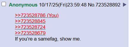 >>723528786>>723528845>>723528724>>723528679If you’re a samefag, show me.
