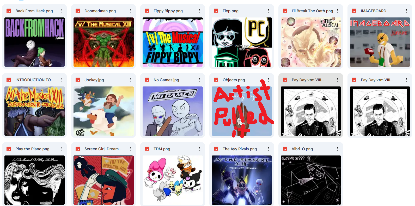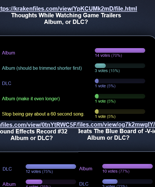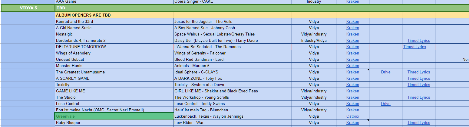 I'm moving some songs around too, specifically swapping some songs labelled vidya but actually about things like piracy or the minecraft movie into board culture albums so the count per album is more equal.>>723595791adding that too