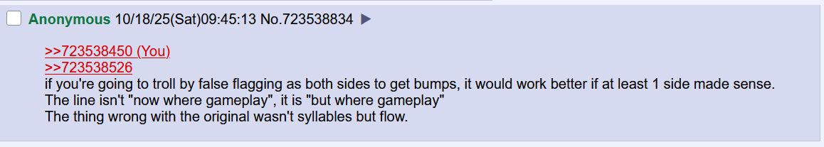>>723533380I'm sorry that happened to you anon. It sucks having something you worked on weaponized ans used against the project.