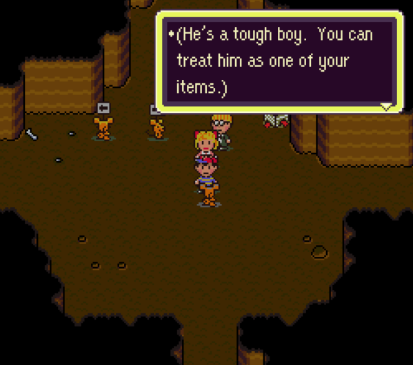 >>723594082they're extremely similar in tone and theme and many concepts, and that shouldn't be a surprise, Toby Fox got his game dev start by making hacks and mods for Earthbound. The combat is different, but someone that laughs while playing Undertale probably laughs at Earthbound too. The entire gag of carrying Lancer around in Deltarune is a direct reference to a similar gag in Earthbound, down to Deltarune quoting the line about being able to treat him as an item because he's a tough boy.The biggest difference imo is Undertale's reliance on multiple routes and endings. Earthbound is just a longer single campaign instead of a short one you replay a couple times.