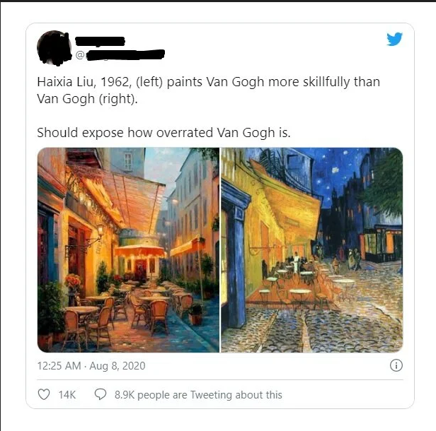 >>723561142>more skillfullyVan Gogh wasn't going for realism. Painters had already mastered that art.Best example would be cartoons, where even if they aren't realistic you can still accurately claim some anime characters look better than others.