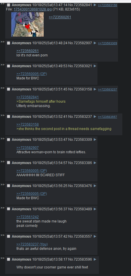 >>723560261>t. post nut coomer who will go back to fappin' within the hour