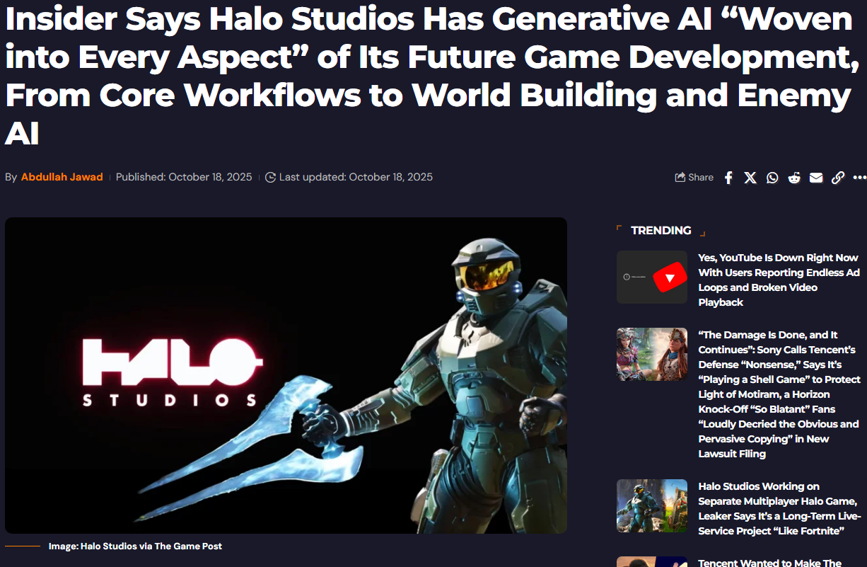 >>723608573was 343 the first flagship dev to unapoligetically outsource huge vertical slices of their games that didn't fit together?I'm sure they'll finally become good devs with AI