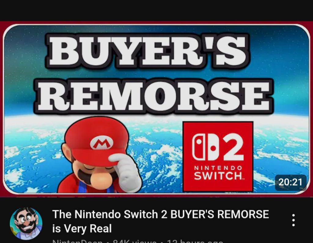 >Nintendeen>the guy who started making anti Nintendo videos because it got him more views than him ranking Mario Party boards>the guy who bought 2 Switch 2s then said he would totally throw away a new one if his kids bought him it>the guy still buying Nintendo games