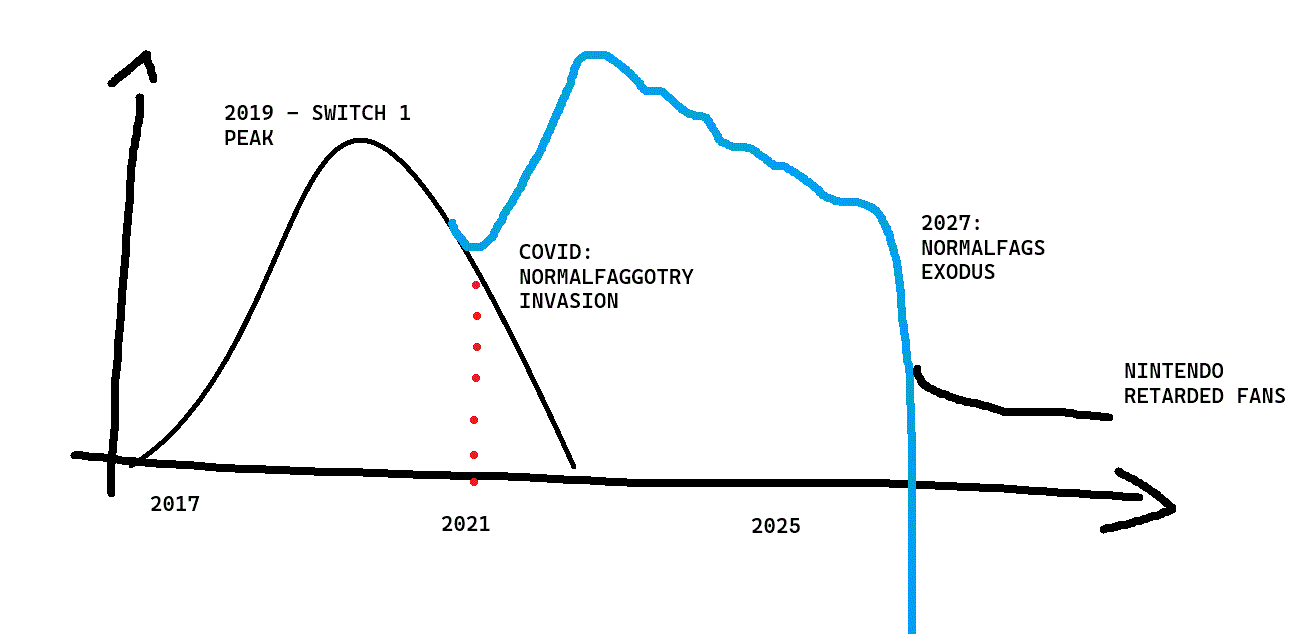 The history of the Switch can be summarized in three phases.The first was the successful launch with Zelda BOTW. This attracted not only Nintendo fans, but also people who play video games casually. It was a huge initial success.Like the Wii, however, the Switch ran out of steam and just three years after its launch, it began to enter a phase of decline. That's when COVID hit and ultra-normalfags invaded the Nintendo ecosystem in unprecedented numbers. The 50 million copies sold of Animal Crossing are a reflection of this second phase.Normalfags, however, are volatile. They incorporated the Switch into their habits, but they can leave as quickly as they came. I predict that in 2027 there will be an exodus of normalfags and only fans aged 30+ but with the mental age of 12 will remain.This may change if there is another unpredictable event like the COVID hoax, but this is an extremely rare case. It's not every day that 90% of people with the common flu are diagnosed with a fatal disease and become so afraid that they don't leave their homes.