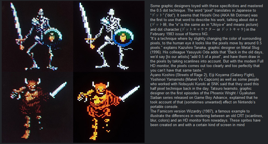 >>723612639Unironically yes. Pixel graphics, up until the widespread adoption of LCD displays, were designed to take advantage of the fact that the console pixel grid does not line up perfectly with the triads in CRT sets.
