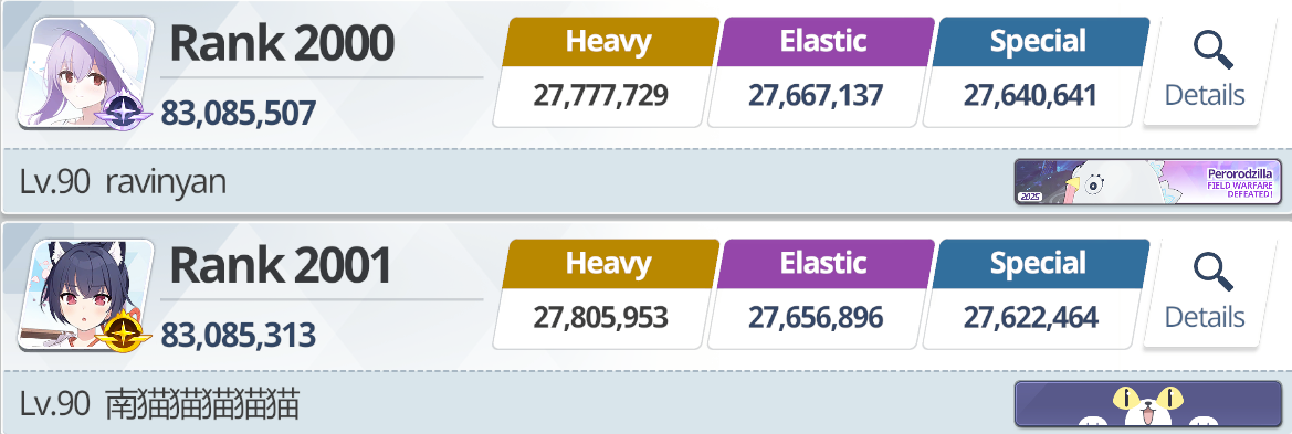 >>723667542Around 2700ish, I think I'm going to make it. I did three Insane runs, not even particularly good ones.>Restriction ReleaseUp to 65. I like the fight and mechanics but it's designed to require specific characters, which is bad game design.>EventI'm glad it's ending, I just spent all week buying Gifts. There are a ton in the event shop.>PlansI have 52k Pyros. Gonna two on BlueFes, one for Wildhunt girls. I hope I have enough time to get another spark to toss at the Magical Girls too.If I'm forced to choose between Wild Hunt and Magical Girls, I'm picking Suzumi and Reisa.