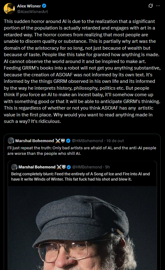 >>723764253>AI bad because only rich inbreds get to determine who has good taste or notOMEGA LUL