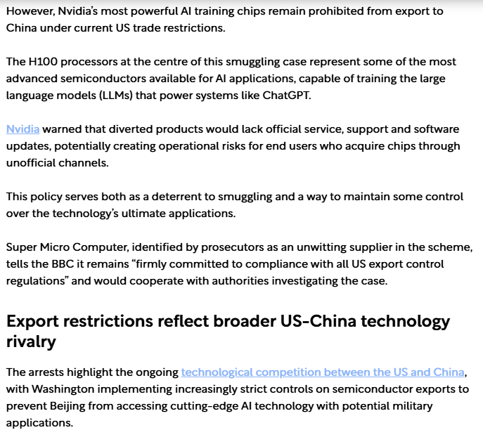 >>723780702That snippet you posted doesnt even mention the type of card. H800s are banned, of course they're smuggled in. Also you're an unc