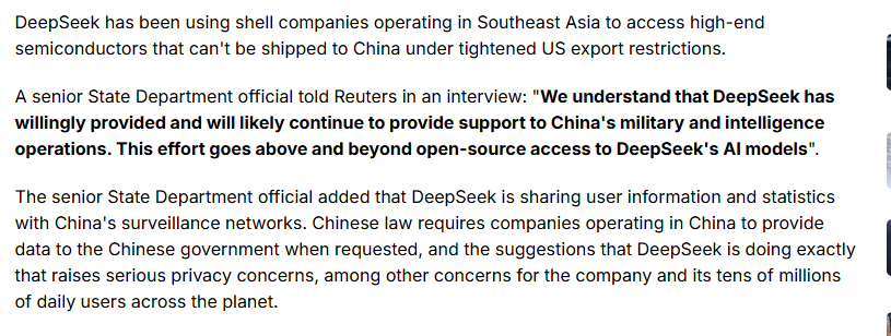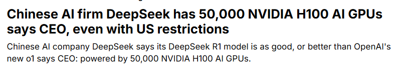 >>723778348they used H800s. like your headline and article dont even dispute that fact. Why are you crying