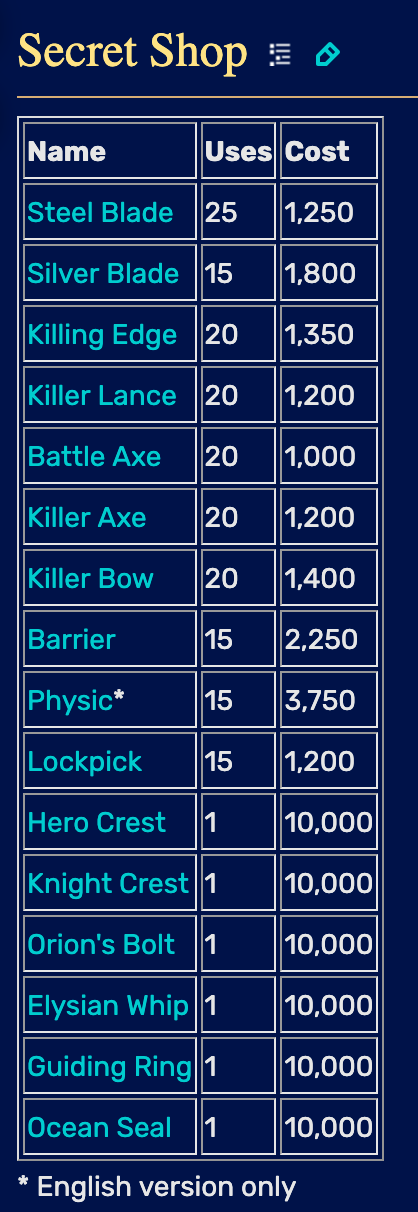 >>723938026What is even worth buying there? I guess a Barrier would be nice, but you can buy pure waters on the world map...Killer weapons are kind of a meme in SS too