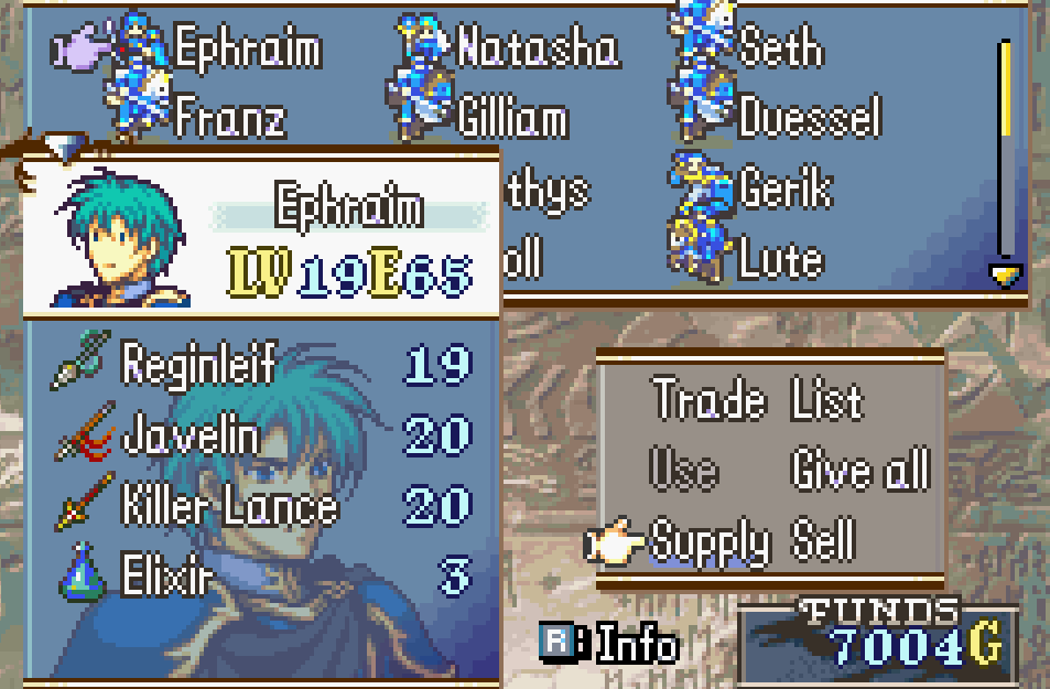 >>723967663>LegacyI have yet to play it but triple effectiveness Mani Katti sounds like she can at least still fill the niche of cav killing. I'm more looking forward to lance Eliwood though. Also while you can't get to 20 without abusing Lundgren or something, there is enough exp to get Sain to 18 if you more or less solo with him. And 18/1 Sain is still really good.