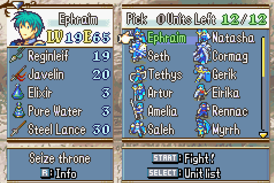 Sacred stones is so weird.It starts off piss easy, then if you go ephriam's route theres a difficulty spike with the ghost ship and this chapter. Then its back to piss easy again afterwards. Usually midgame is the easy part of fe.