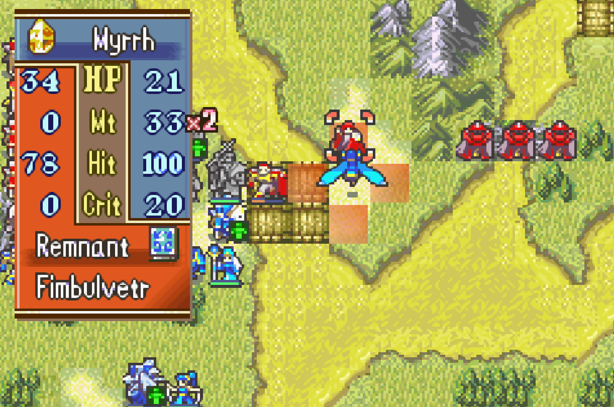 >scrimbloing this late into the gameI've come to realize some people just play FE for the RPG aspects in preference to the tactical aspects, and I don't think you can ever reconcile the two camps. For some players the point is to have a strong endgame team, so early promotion or prepromote reliance are unthinkable; other plyaers just want to get through the game with what is most suitable for the moment they're in.Neither is wrong strictly speaking, it's a single player video game, but the two are doomed to clash because of their fundamentally different assumptions about what is important.