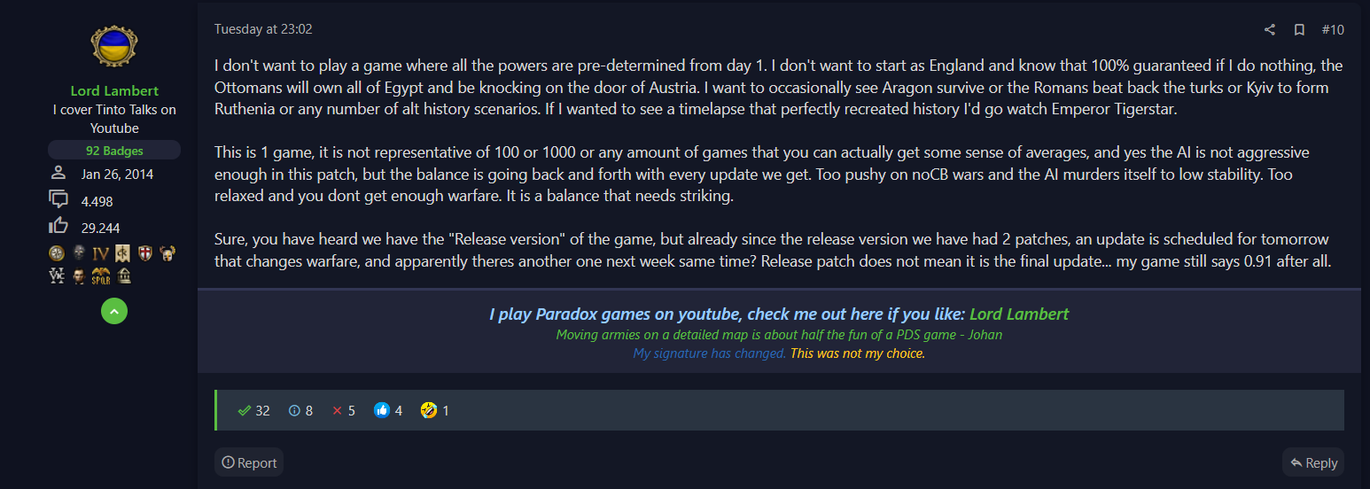>>723960259I'm sure he meant well with that post but Lambert is not good at all with expressing himself.All of this already happens in EU4 because of shifting alliances between the AIs.