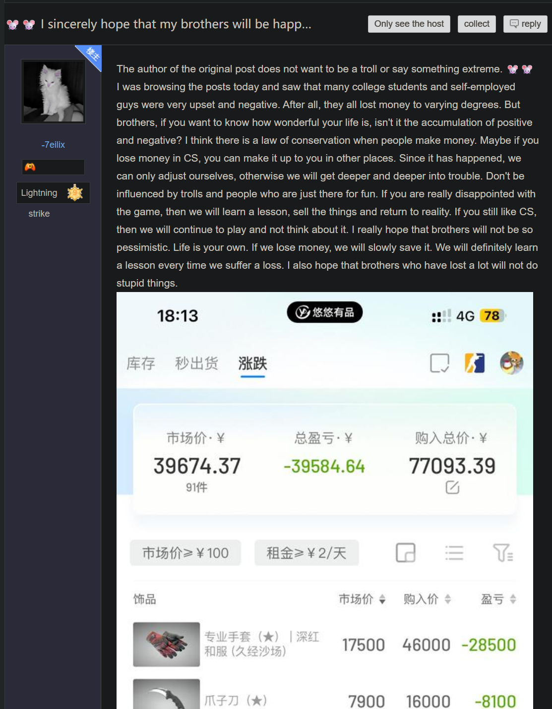 >>723957773on one hand, i feel for these guys. this must feel crushing.on the other, "investing" in video game weapon skins never seemed like all that good of an idea.i hope that most of them can get back on their feet.