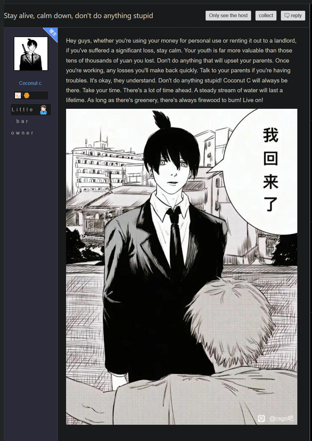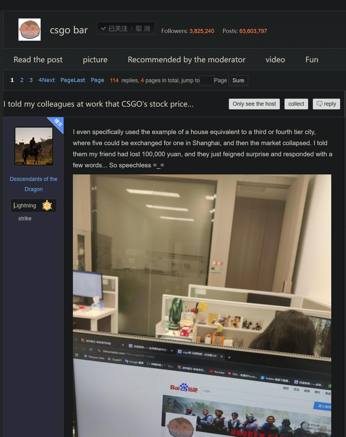>there are people who invest their life savings into Counter Strike>instead of doing anything actually productive they made a living out of flipping skins and "renting" skins>they didn't take their money out, instead they reinvested everything into the same game>somehow they expected the line to always go upCrazy thing is that this is the same shit going on with housing and pretty much every aspect of modern society.