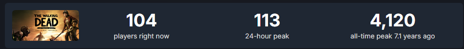>>723993695It is interesting to me that the stats haven't changed all that much from one day to the next, despite the fact there were 7k players playing it just a while ago.I don't think they're fake, but maybe? Or they're bugged. That's possible too.