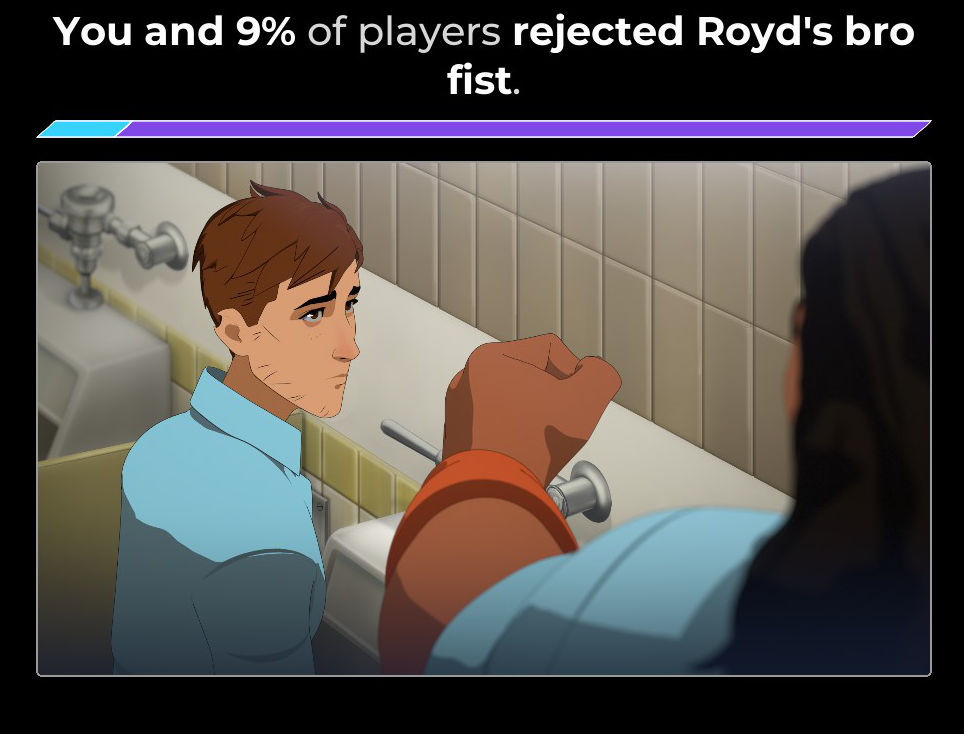 >>723975043That or he's some sort of alien. Very robotic and missing social cues.>>723975070Same. Telltale can just pull it off I guess.