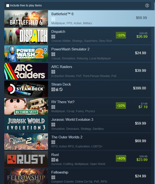 >Actually in the top sellers and beating out a ton of other higher profile games, only beaten by the FOTM BF6That's insane considering i don't think i've seen much marketing for it. I'm assuming this is an easy million copies seller, and i dont think the game had that big of a budget.