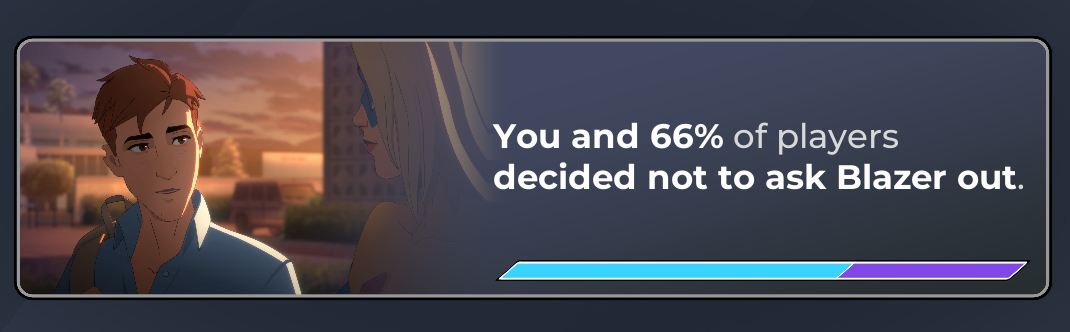 >>723992603It's funny that the big cliffhanger for this week is that the woman that 66% of players have already decided to drop has a boyfriend. I seriously hope the game doesn't try to railroad me into giving a fuck about this.