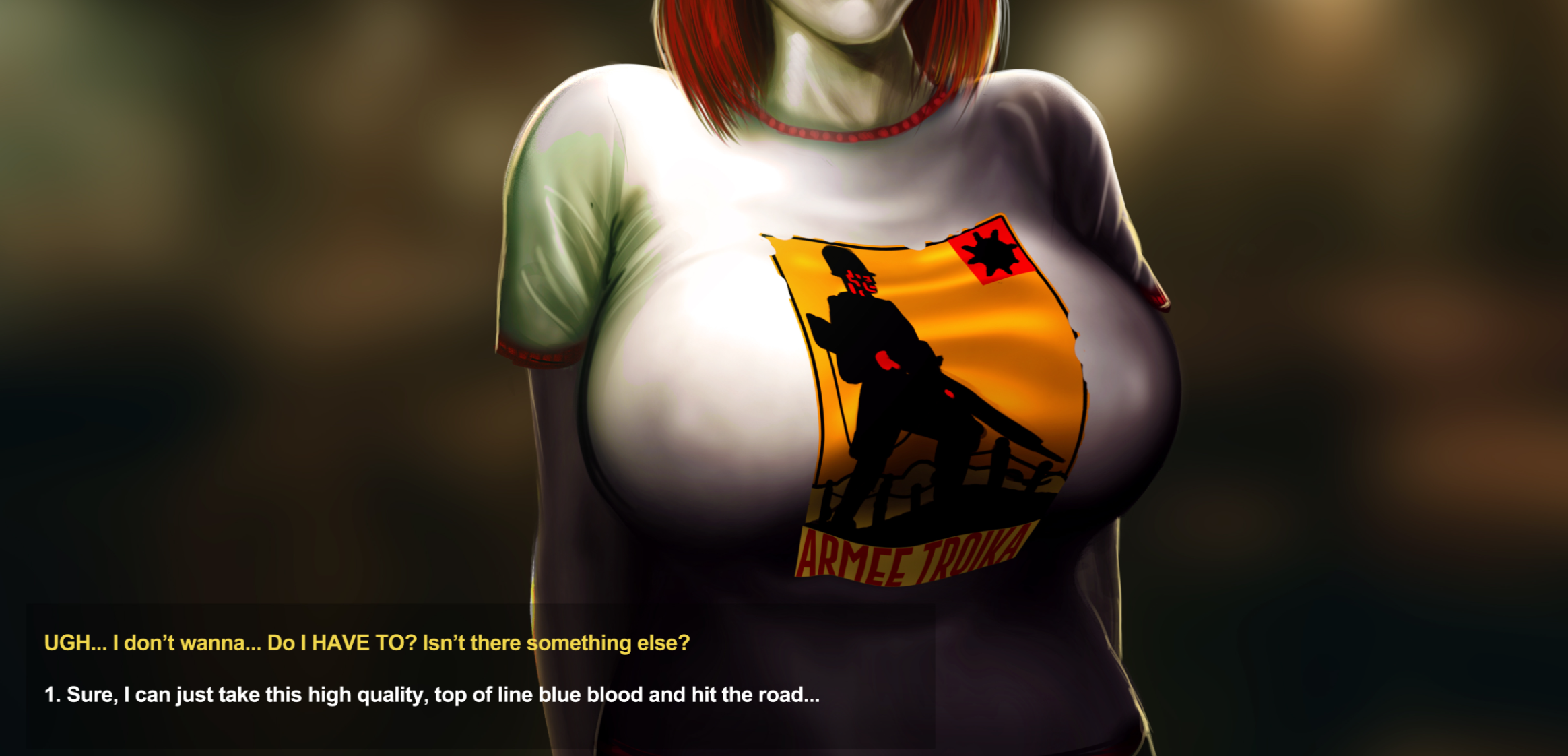 >>724052857>make it so you can just refuse and leaveThis is a good option. I think that the kill her/embrace her dilemma is very stupid. Just add a third option where you say, "No, sorry, thanks for the info, but I'm not making you a vampire."