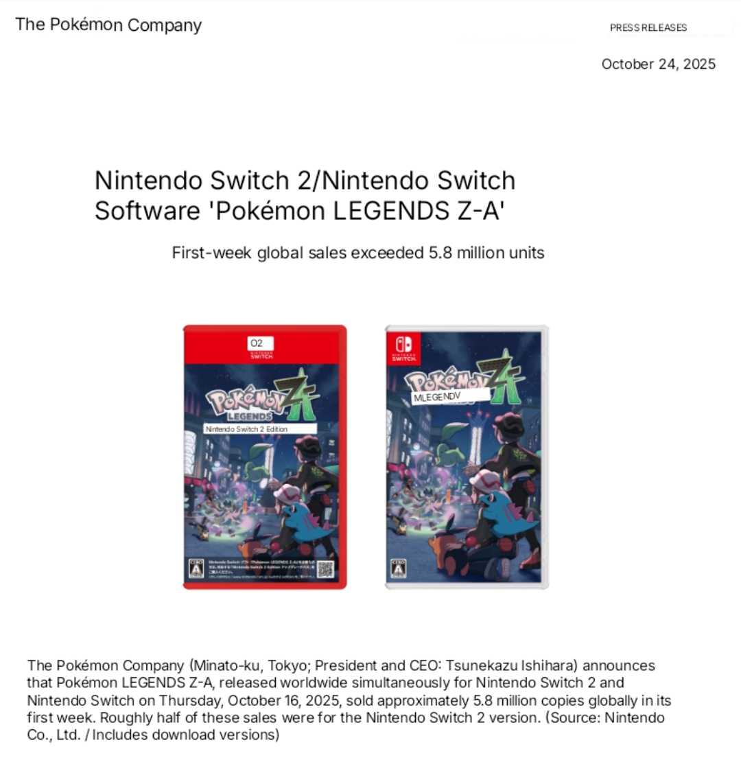 >>724064418PLA sold 6m in a week but that was to be expected since S/V and such has two different versions of the game to sell vs only one version of PLA. In this case, what's noticeable is that 50% of ZA was sold for the Switch 2. It's selling consoles instead of just taking advantage of a preexisting playerbase. As long as Switch 2 keeps selling, ZA will as well.