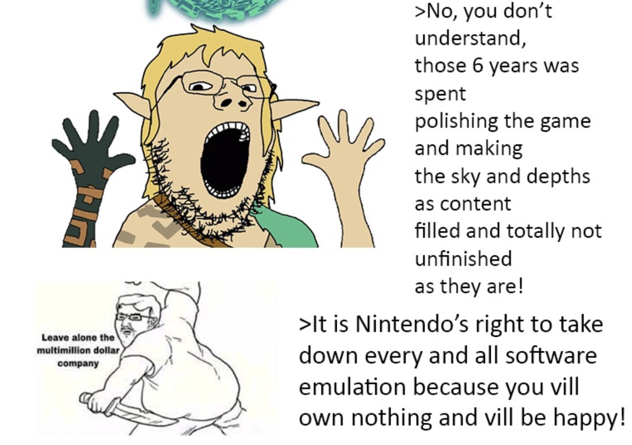 >>724109253It's amazing how much mental gymnastics they go through to defend it. Especially when TotK is not EVEN a sequel to BotW. It's a sequel to Skyward Sword AGAIN but this time it's fucking MOON GOATS