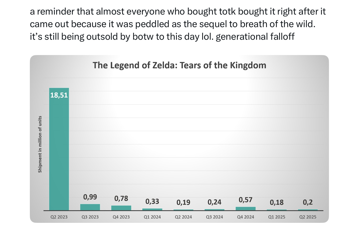 >>724108470Sales doesn’t equal quality anon. Especially since BotW is still outselling TotK anyways.