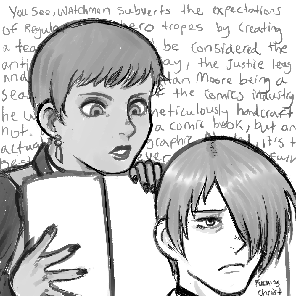 >>724072838She's getting ready to talk about the works of Alan Moore.