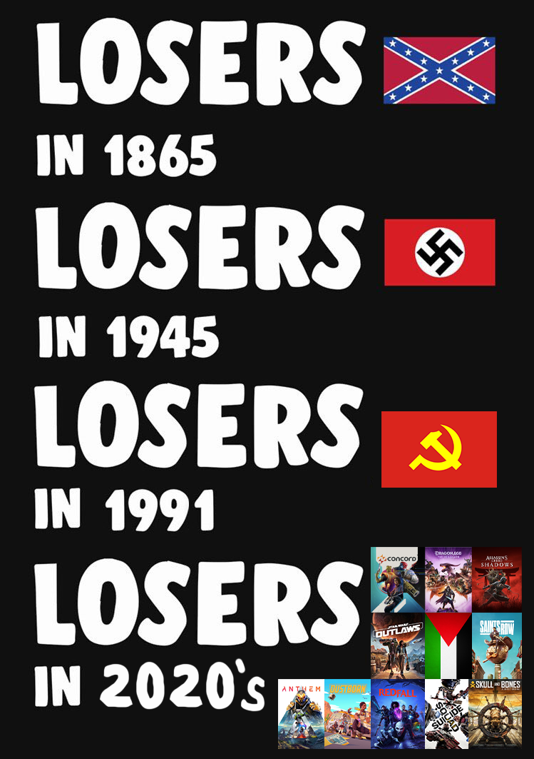 >>724111249Are you calling a target of systematic genocide "losers" and categorizing Palestinians as same thing as some fucking vidya flops?I know it's cool to be edgy and all but come on