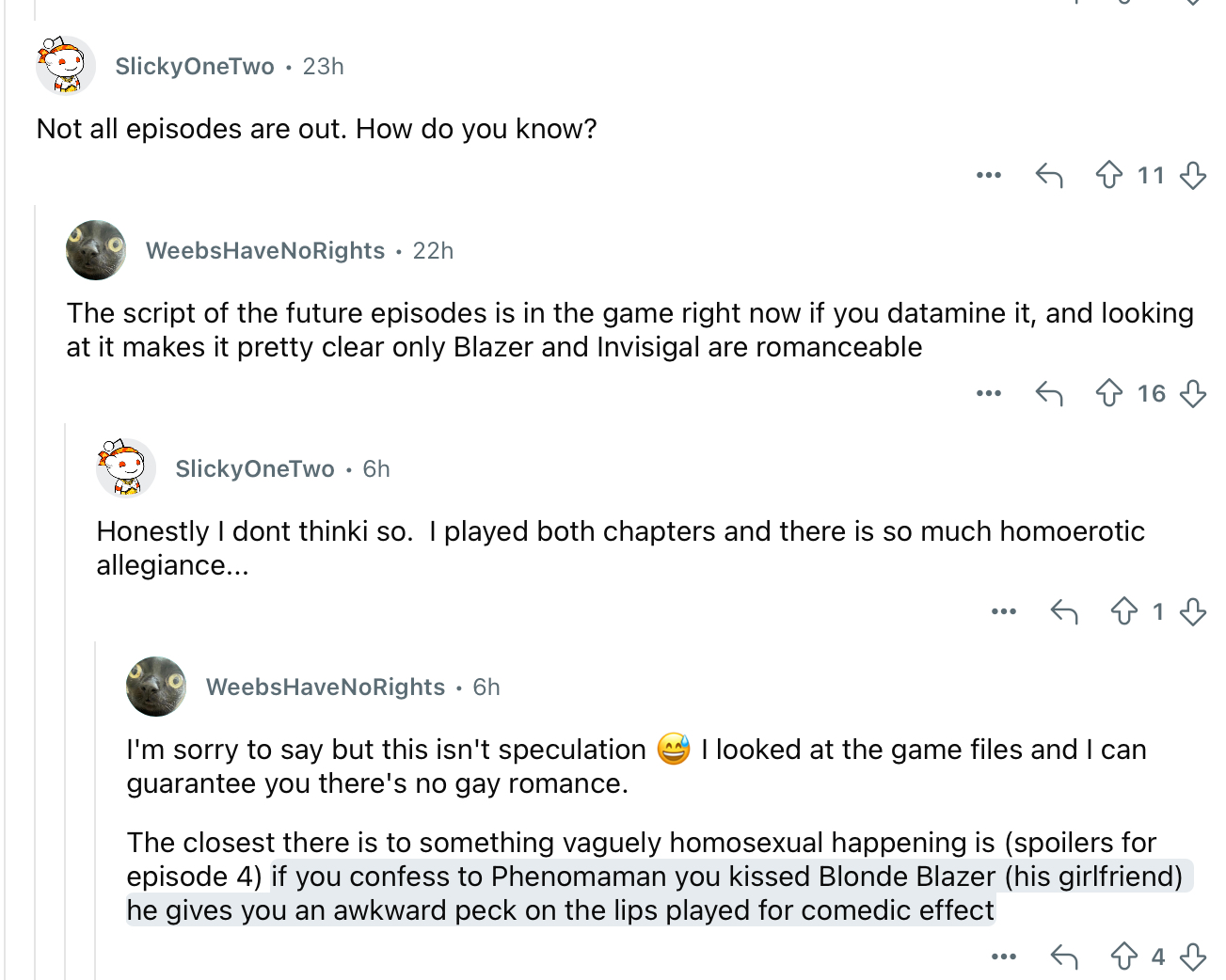 >>724092639I wouldn't mind the shorter episodes if we still had a "hub" section, at least every 2 episodes. Did people not like them in Telltale games? I always thought they helped with the pacing by making the episodes seem longer and gave you a chance to interact with characters better than the dispatch minigame does. Hopefully the teambuilding chapter next week leans into this