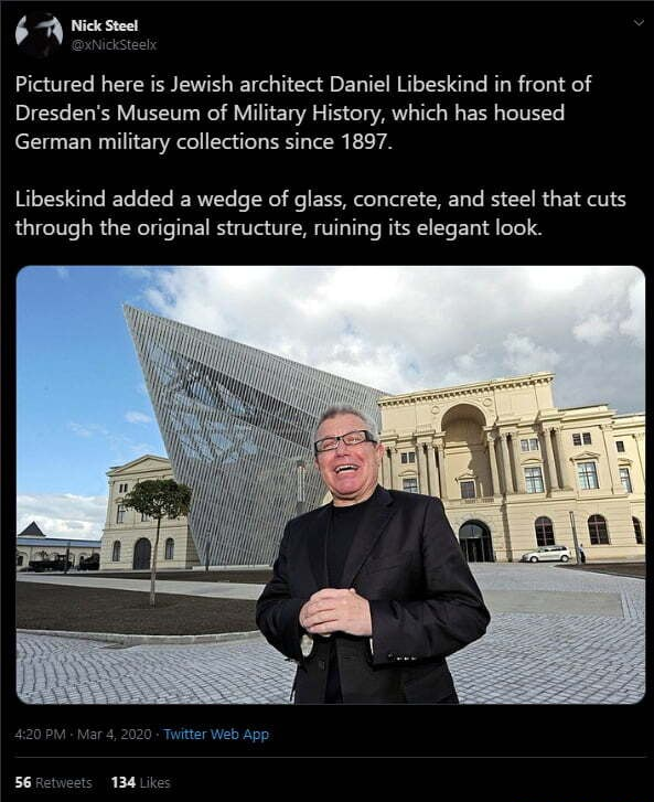 >>724133620>post-modernism, on the other hand, is a jewish conspiracy-the celebration of ugliness. it is flamboyant, overdecorated and devoid of beauty. trannism and BLM aesthetics is jewish.Im black and this is 100% fact. Anyone who disagrees is simply evil or a coward in denial.