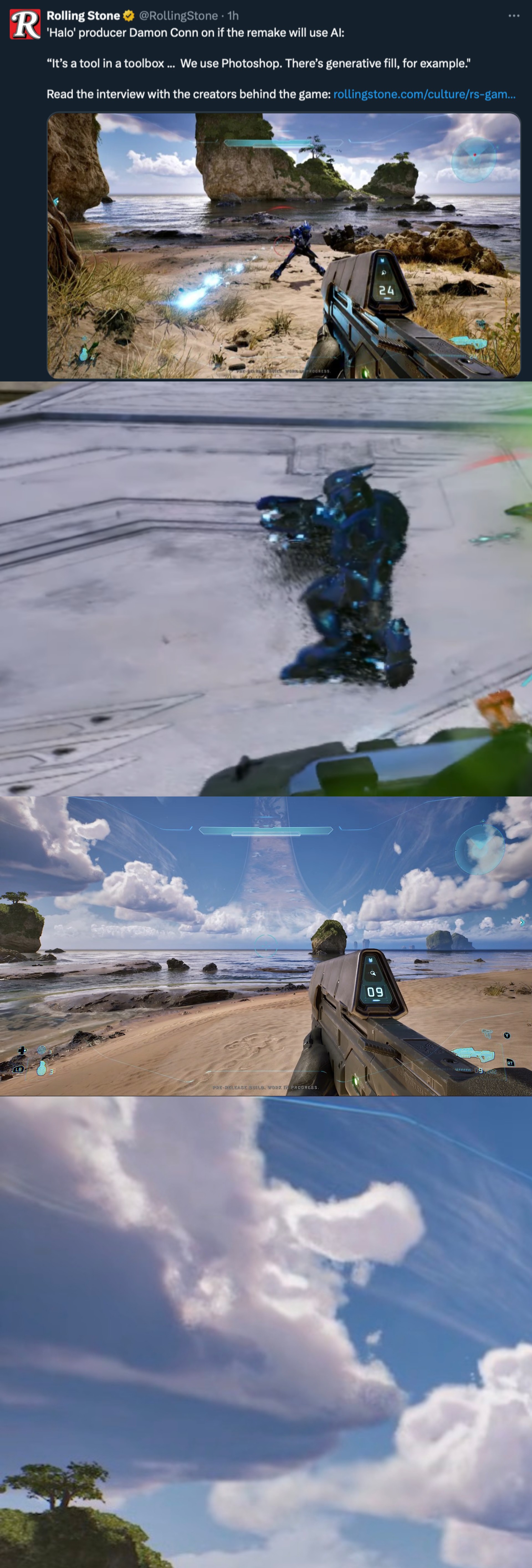 >the lighting is gone in favor of AI-generated darkness>the color is gone in favor of AI-generated monochromacity>the mural is gone in favor of an AI-generated wall>the ornamental lights are gone in favor of AI-generated LEDs>the unique architecture is gone in favor AI-generated Forerunner doorframes copypasted everywhere>the game is gone in favor of AI-generated slopIt's over.