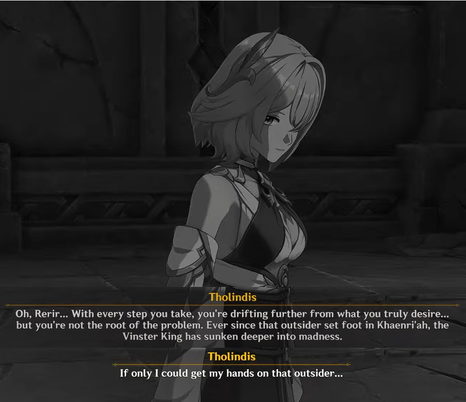 >>724154961>>724155423Well Dain also has an Abyssal hand, understands the truth of the world and hates it with every fiber of his being.He just doesn't plot to destroy it. Rhine is likely similar. Surtalogi as well. He's not crazed or anything, he got infinite power and stopped giving any fucks about Teyvat despite being almost completely an abyssal creature at this point. As is Skirk. Enjou is likewise just doing whatever the fuck he wants, simply pursuing his fancy.What happens during the Gosoyoth fight is Gosoyoth abusing the sounds and images of the previous pyro sovereign/archons to fuck with Mavuika. It's the reanimated dragon/weird sentient ball of evil that is talking to her when she gets in its presence and starts fighting it manno a manno.Rene experimented with abyss all the time and yet he never mentioned he was whispered to by anything. Etc.Abyss doesn't talk. You can just use its power to impersonate others (much like Rerir does to get Tabibito to help him). But there has to be a culprit behind it.
