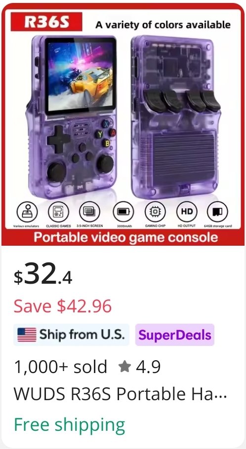 watch out for fake R36S clones, fakes ones aren't able to even run N64, DS or even 3D GBA games