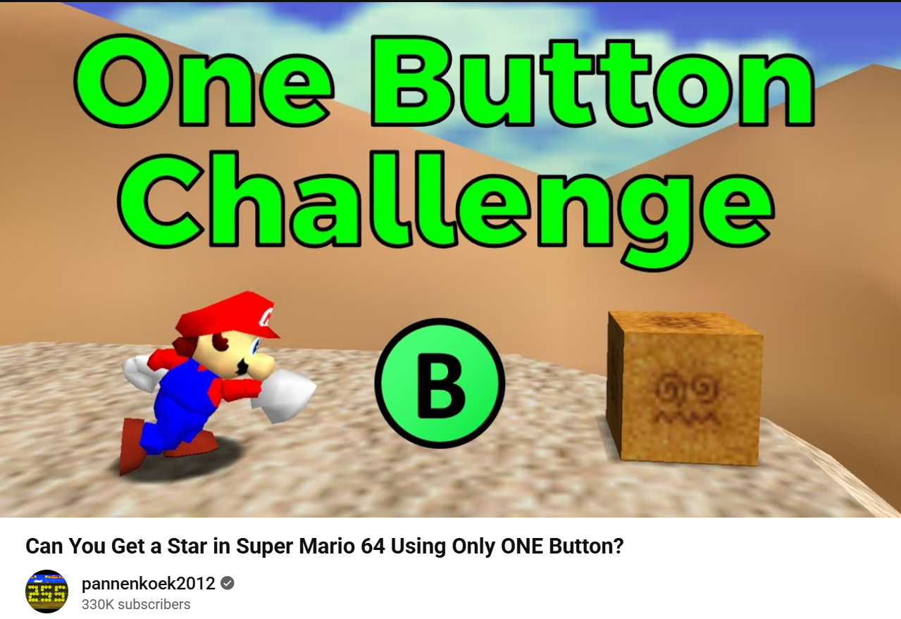 >>724165642the challenge is using "ONLY one button"not "using the control stick and one button"