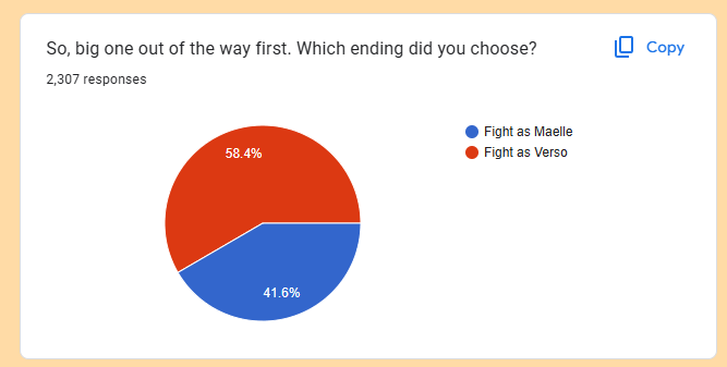 >>724192253>Lol 41% chose suicideThat's Verso ending, his whole character is about killing himself while pretending he's doing it for others.