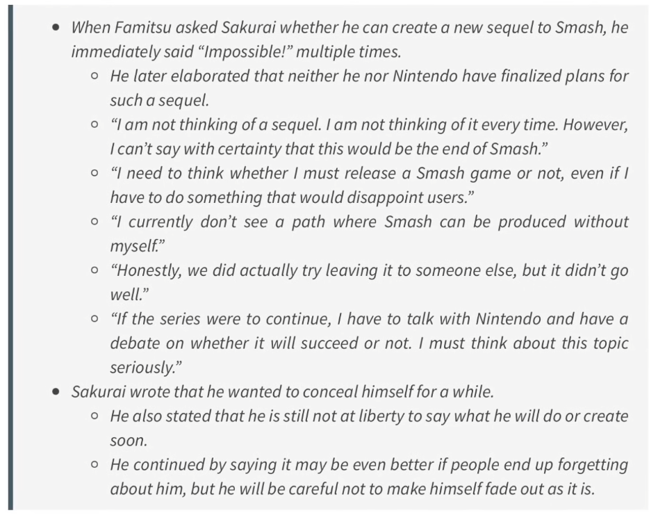 >>724204567>Sakurai literally said he wasn't doing any more Smash games and that somebody else under him will.never said that