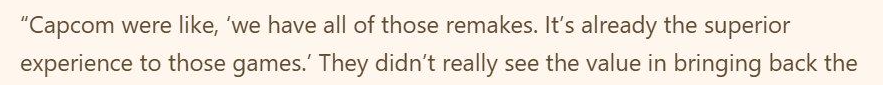 >>724208654NuCrapcom cares about money only; they got a fortune on shitty assetflips for nostalgic normies. And funny enough, looks like current devs just hate those old games