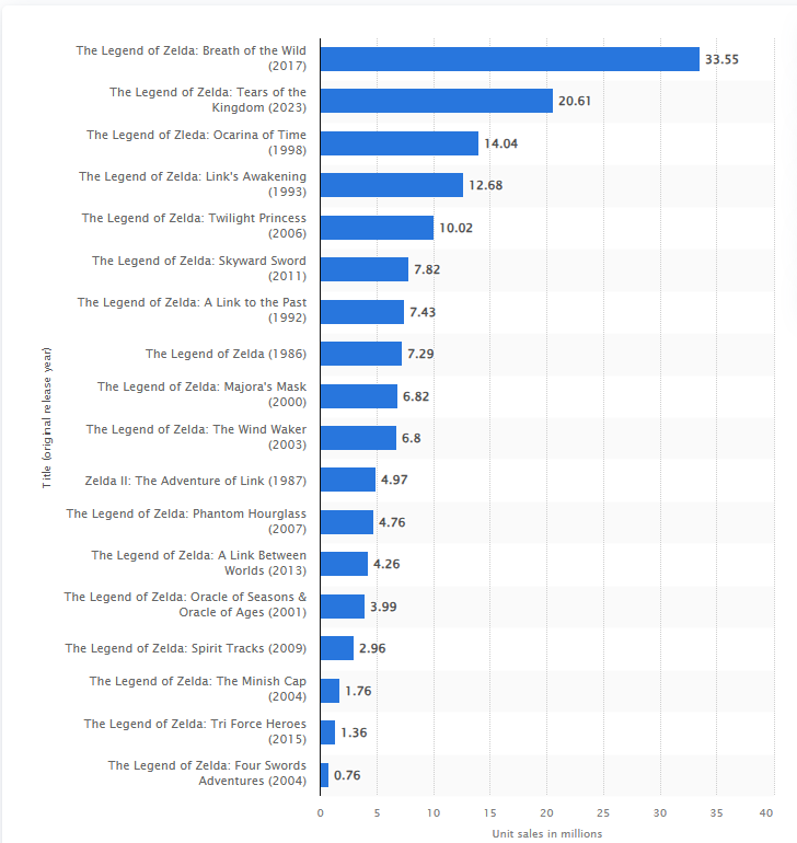 >>724211386>Second game has a big drop offThird game is going to be a flop if they try it.Regardless, sales don't turn something into a Zelda game. It doesn't matter if every person on Earth bought Zelda Rust and Zelda: Nuts & Bolts two times, they still wouldn't be Zelda games.