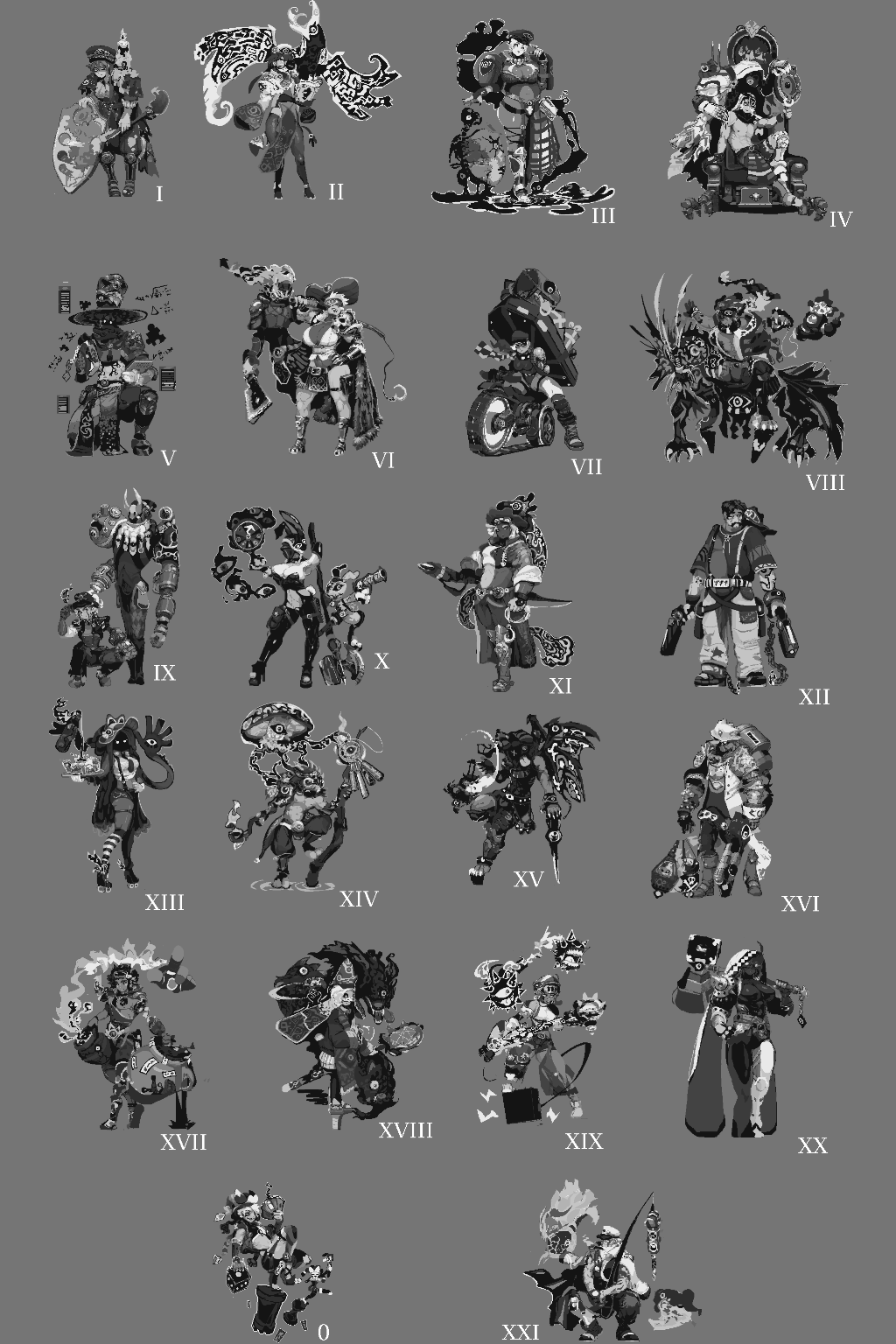 Thanks! Have a character roster to look at. I think tarot is criminally underutilized in games both visually and mechanically. Still tweaking + polishing them but i'm feeling pretty good in general! Psychic stands are cool I don't care if persona and jojo's have done it already.