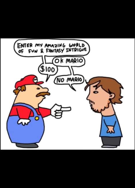 >>724238290How about Yes Mario, but I shall enter it by way of piracy, thank you very much, that way we both win, I don’t have to pay, and I get to see the world you oh so wanted me to gaze upon and experience.