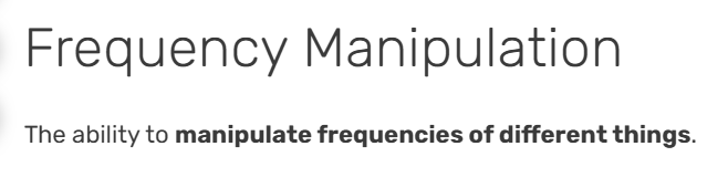 >>724303780this seems really fucking useless or completely bustedhttps://powerlisting.fandom.com/wiki/Frequency_Manipulation