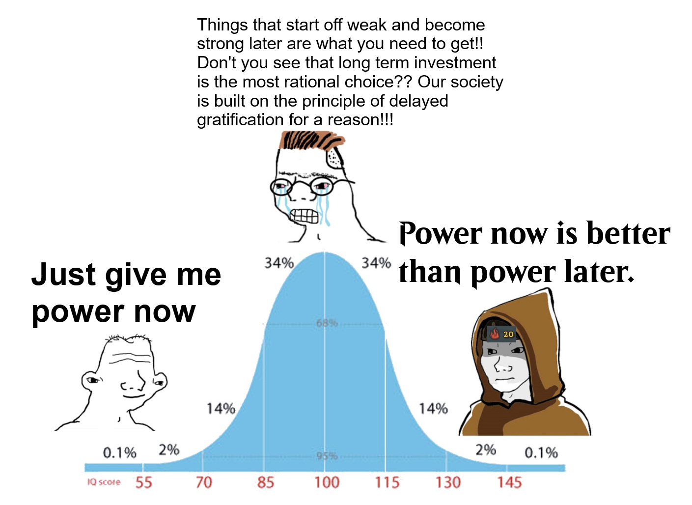 What causes midwits to overvalue or even idolize delayed gratification? How many more runs will they throw by picking "scaling" early, how many more queues of dota will they ruin by rushing Midas?