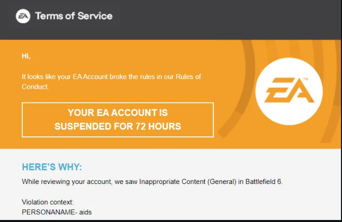 EA is actually out of control with the bans. Tons of people are getting banned for nothing and first offenses are 168 hours which is insane.