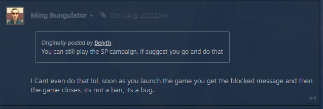 >>724260895>Edited pic from the latest meme fad of fake bans from r/battlfieldHello le reddit